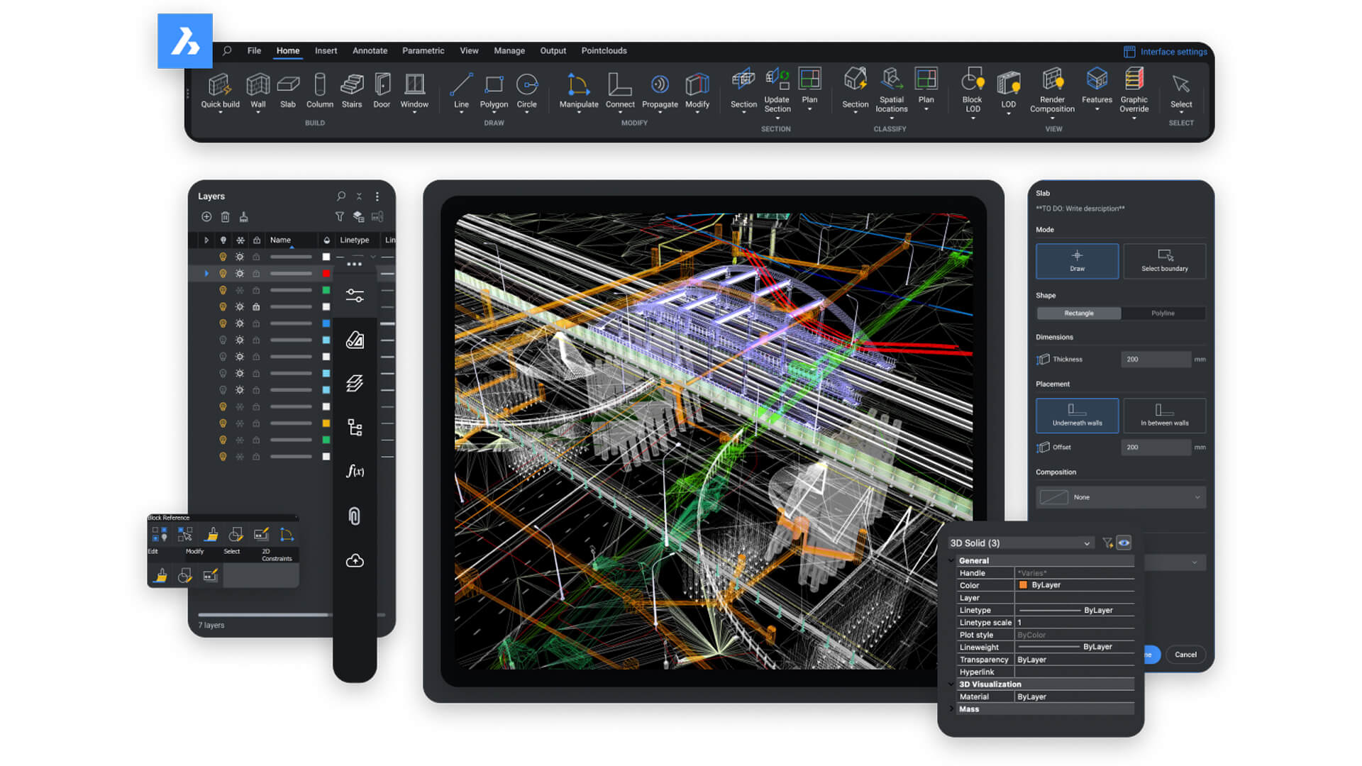 Easily preprocess common point cloud file formats, including RCP and RCS files, directly from BricsCAD to produce a highly efficient VRM (Virtual Reality Model) file format.
